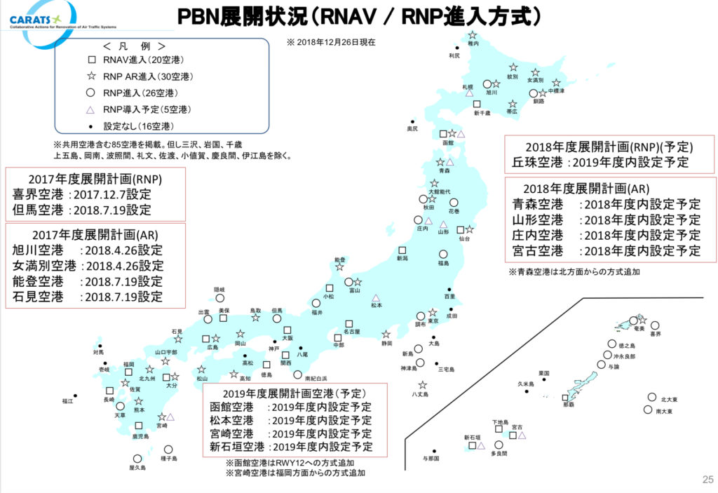 2018年12月の資料とのことですが、国内空港のRNAVアプローチの設定状況です。