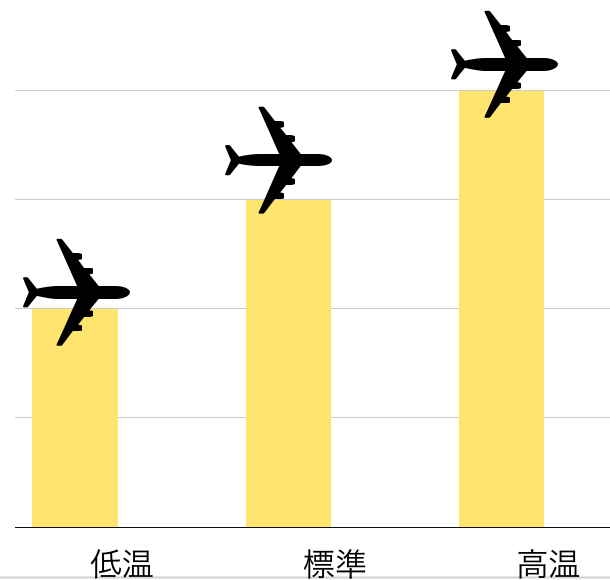 飛行機の高度計は気圧で測定しているため、気温による影響があります。暖かい空気は膨らみ、冷たい空気は縮むので、暖かい日と冷たい日で高度計の値は同じでも地面からの高さは異なります。暖かい日の方が高く、冷たい日の方が低い位置に飛行機はいることになります。